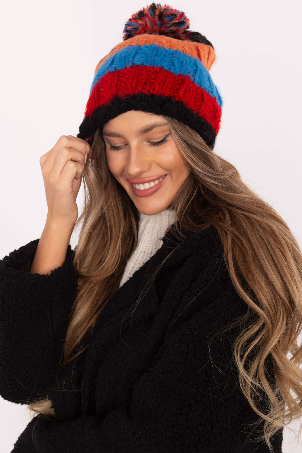 This charming winter hat is the perfect choice for cold days. Made of soft and warm material, it perfectly protects against the cold, ensuring comfort when wearing. Its design catches the eye with colorful stripes in vivid shades, giving the hat a joyful and fashionable look. At the top of the hat, there is a large, fluffy pom-pom, which adds charm and character to it. The hat is elastic, so it fits well for different head sizes. It is a stylish and functional accessory that will work great for everyday walks and winter activities outdoors. Ideal as a gift for lovers of practical and aesthetic accessories.