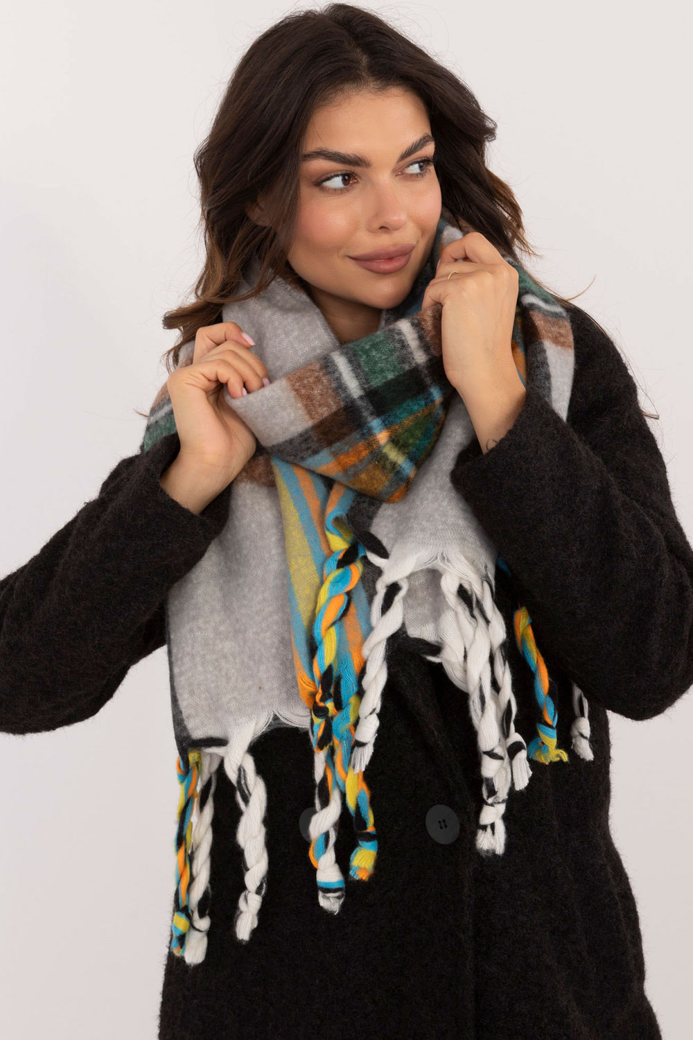 Elegant 182 cm long polyester scarf with check pattern, perfect for colder days. Made of high-quality material, it provides warmth and comfort. Decorative tassels add a fashionable, stylish touch that enriches any winter styling. This versatile scarf combines functionality with elegance, making it a perfect addition to a wide variety of outfits.