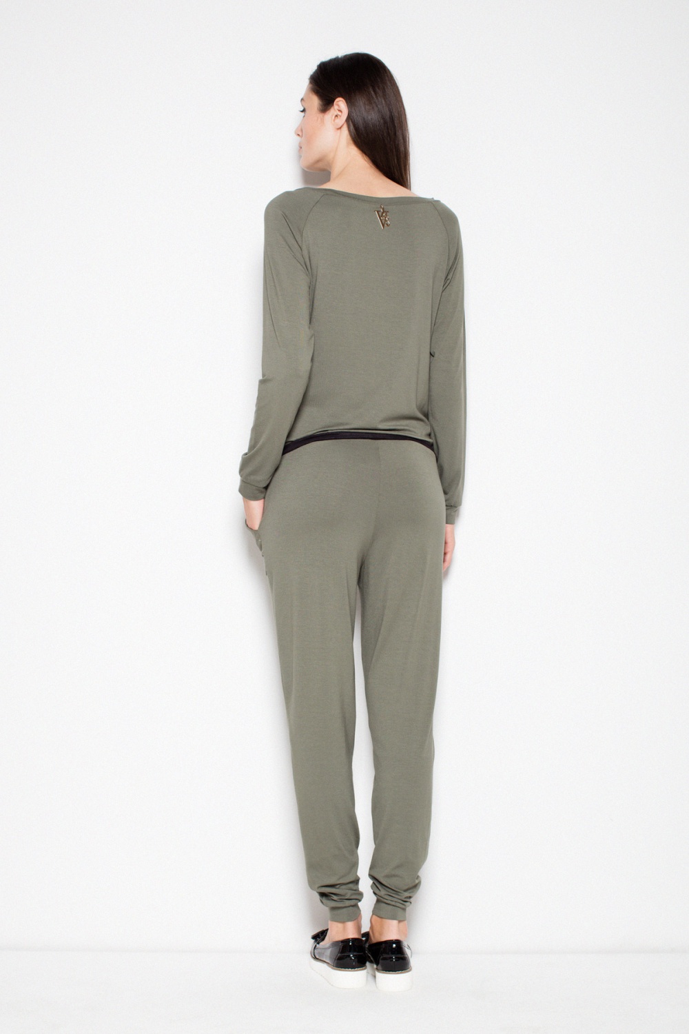 Chic long-sleeve overalls with long legs. Characterized by a pocket and a belt in a contrasting color. Very comfortable and at the same time very elegant.