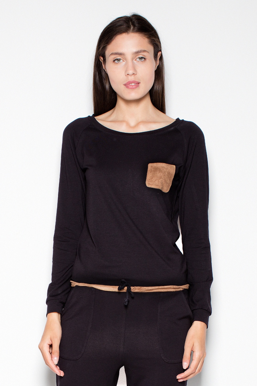 Chic long-sleeve overalls with long legs. Characterized by a pocket and a belt in a contrasting color. Very comfortable and at the same time very elegant.